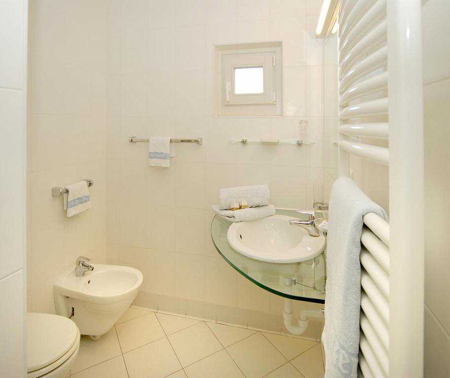pokoj s 1 či 2 samostatnými lůžky či manželskou postelí a případně rozkládacím gaučem pro 1 či 2 osoby, sociální zařízení, balkon