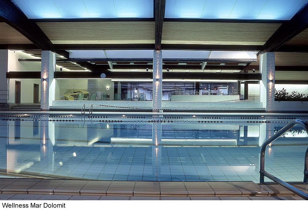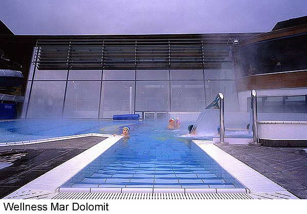 bazénové a saunové centrum Mar Dolomit - Swimming Pool & Sauna - plavecký bazén 25 m, venkovní vyhřívaný bazén s umělým vodopádem, vířivka až pro 6 osob, 4x sauna, 2x pára