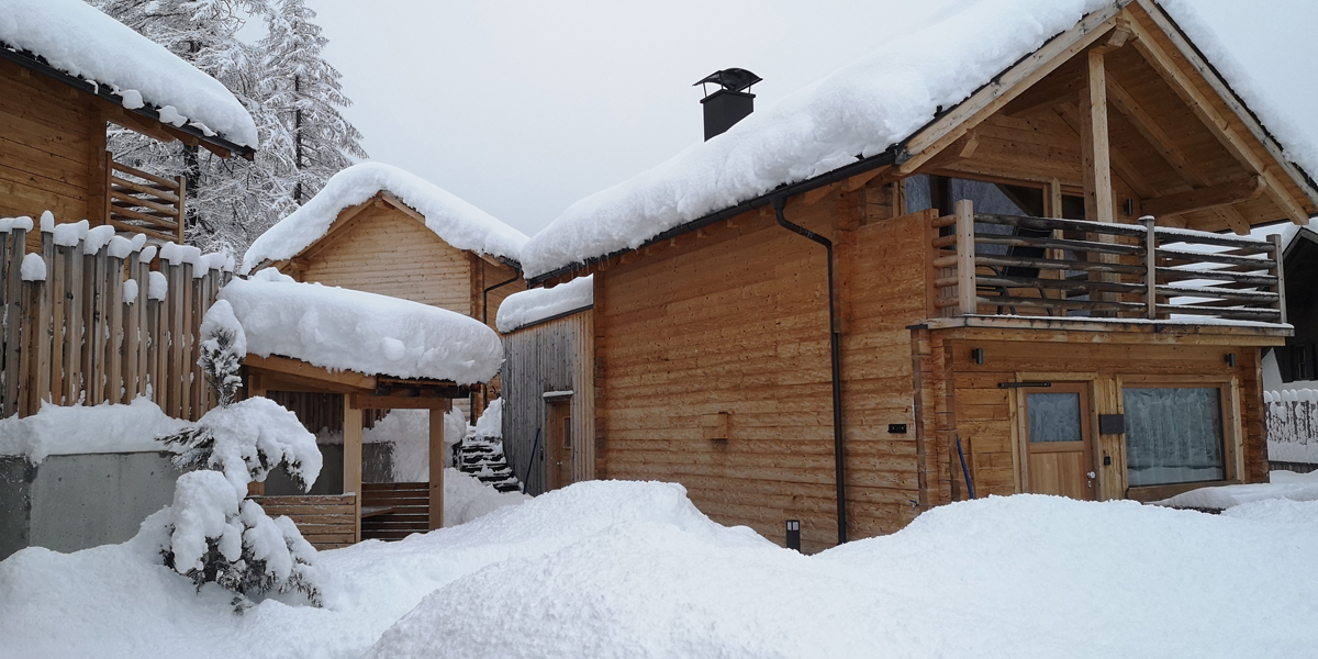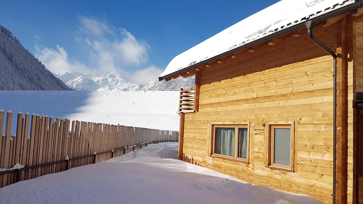 luxusní horský chalet v tradičním alpském stylu z přírodních materiálů s výhledem na hory