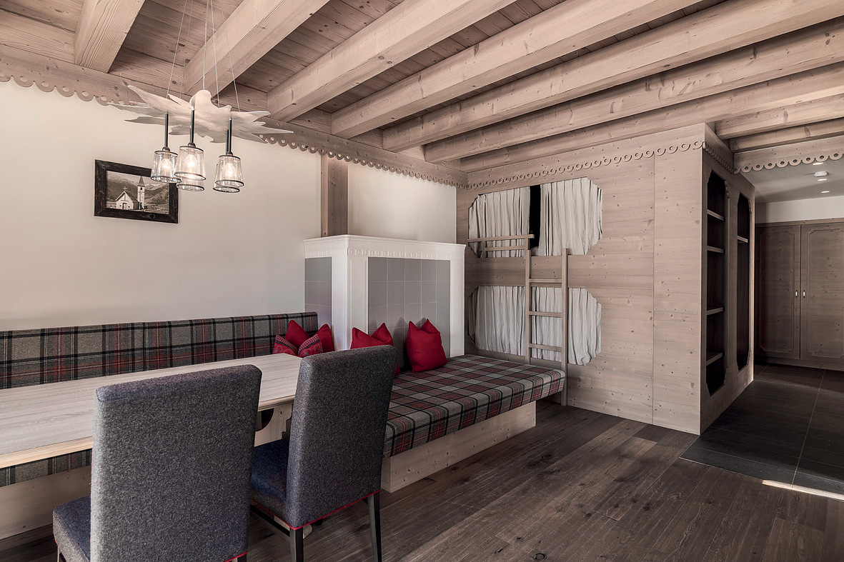 60 m² - ložnice s manželskou postelí, obývací pokoj s pecí, lavicí a zabudovanou palandou, sociální zařízení se sprchou či vanou