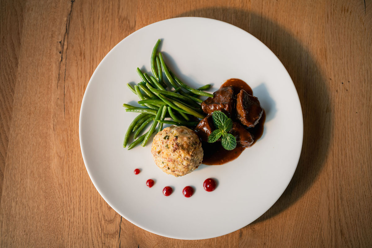 servírované menu - předkrm a výběr ze 2 hlavních chodů, dezert, salátový bufet, nápoje za poplatek
