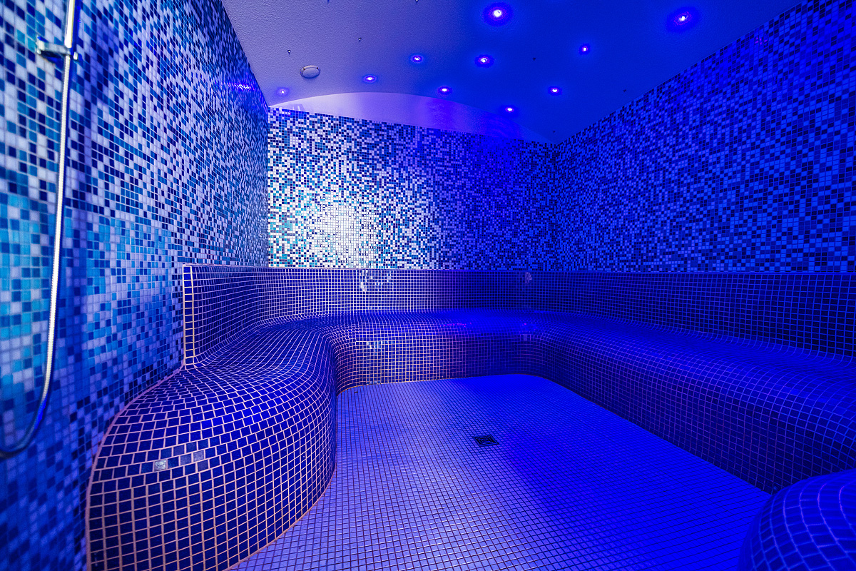 vnitřní bazén 16x5 m, malý bazén pro děti, finská sauna, parní lázeň, vířivka, masáže*, kosmetické služby a speciální dietní programy*, posilovna, stolní tenis