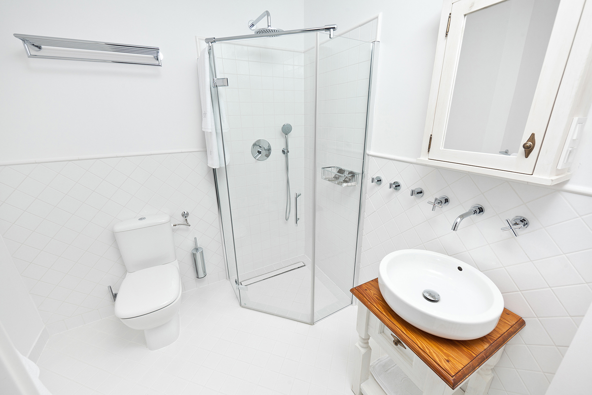 pokoj s manželskou postelí či oddělitelnými lůžky, sociální zařízení se sprchou, zpravidla balkon