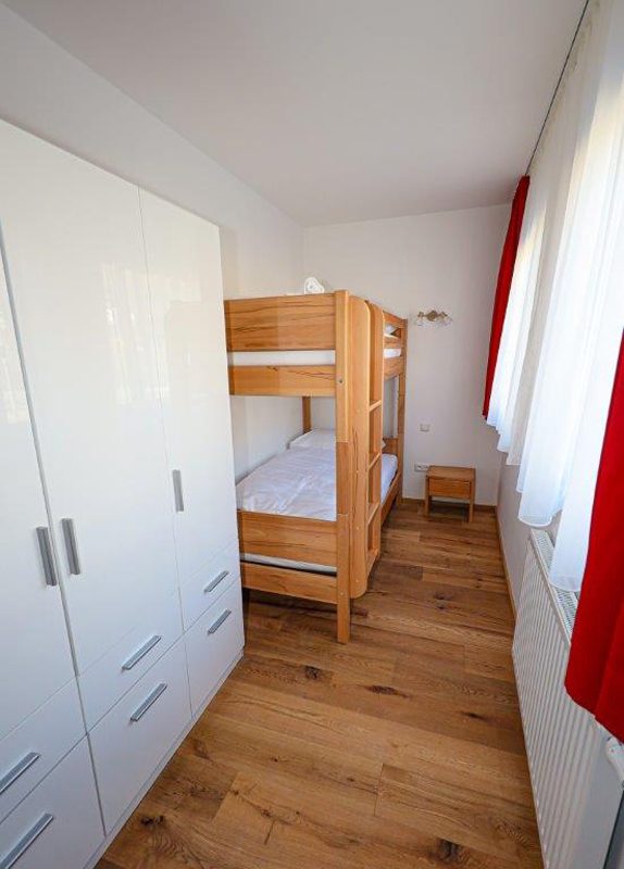 60 m² -1 ložnice s manželskou postelí, ložnice se 2 oddělenými lůžky či palandou, obývací pokoj s kuchyňským koutem a rozkládacím gaučem pro 2 osoby, sociální zařízení, oddělené WC a bidet, balkon