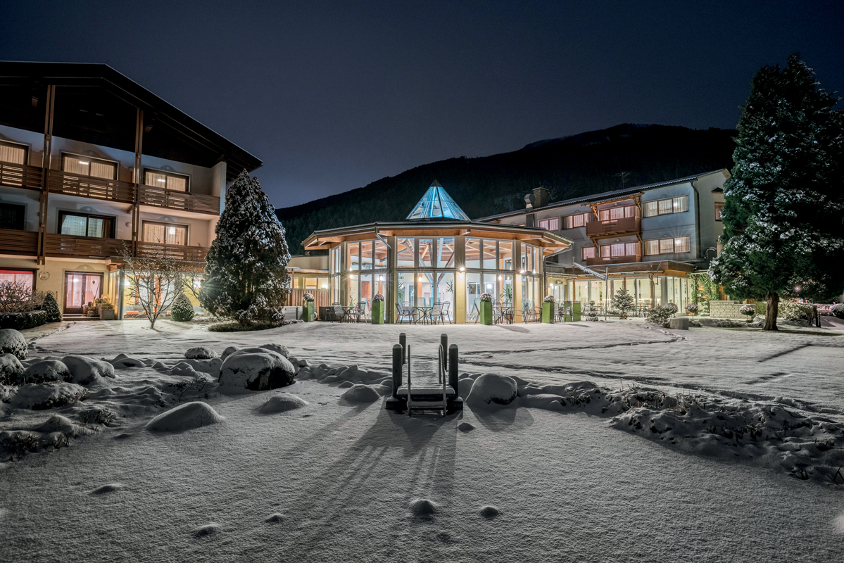 recepce, restaurace vyhrazená pro hotelové hosty, stylová restaurace / bar, společenská místnost s TV a krbem, sluneční terasa s posezením, zimní zahrada, velká herna s dětskou lezeckou stěnou, úschovna lyží a lyžařských bot, výtah, vyhrazené parkoviště