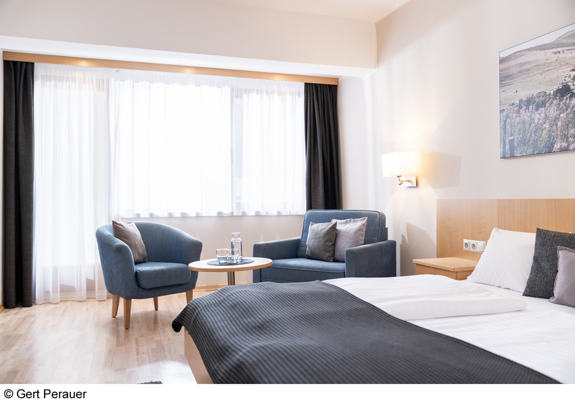 Superior 2/3 - 23 m² - pokoj s manželskou postelí a případně rozkládacím gaučem pro 1 osobu, sociální zařízení, balkon