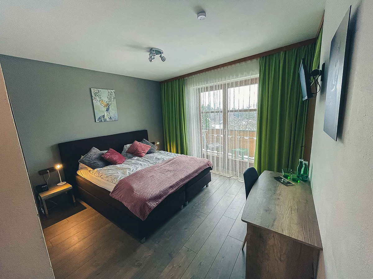 20 m² - pokoj s manželskou postelí, sociální zařízení, oddělené WC, balkon