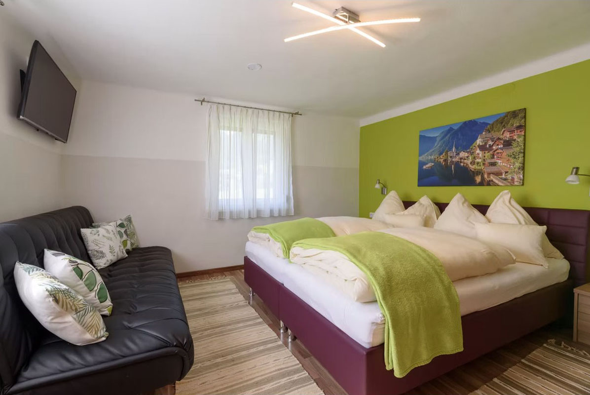 1. podlaží apartmánu přístupné po příkřejších schodech: ložnice s manželskou postelí, balkon; na vyžádání včetně kalkulace lze na gauči v ložnici ubytovat 1 až 2 děti do nedovršených 15 let