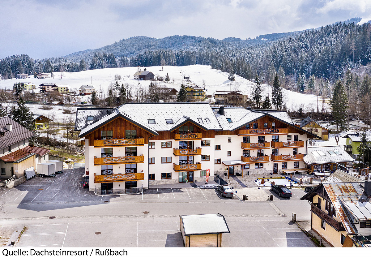 jen před 3 lety nově vystavěný aparthotel v centru městečka Russbach a nedaleko spodní stanice kabinové lanovky
