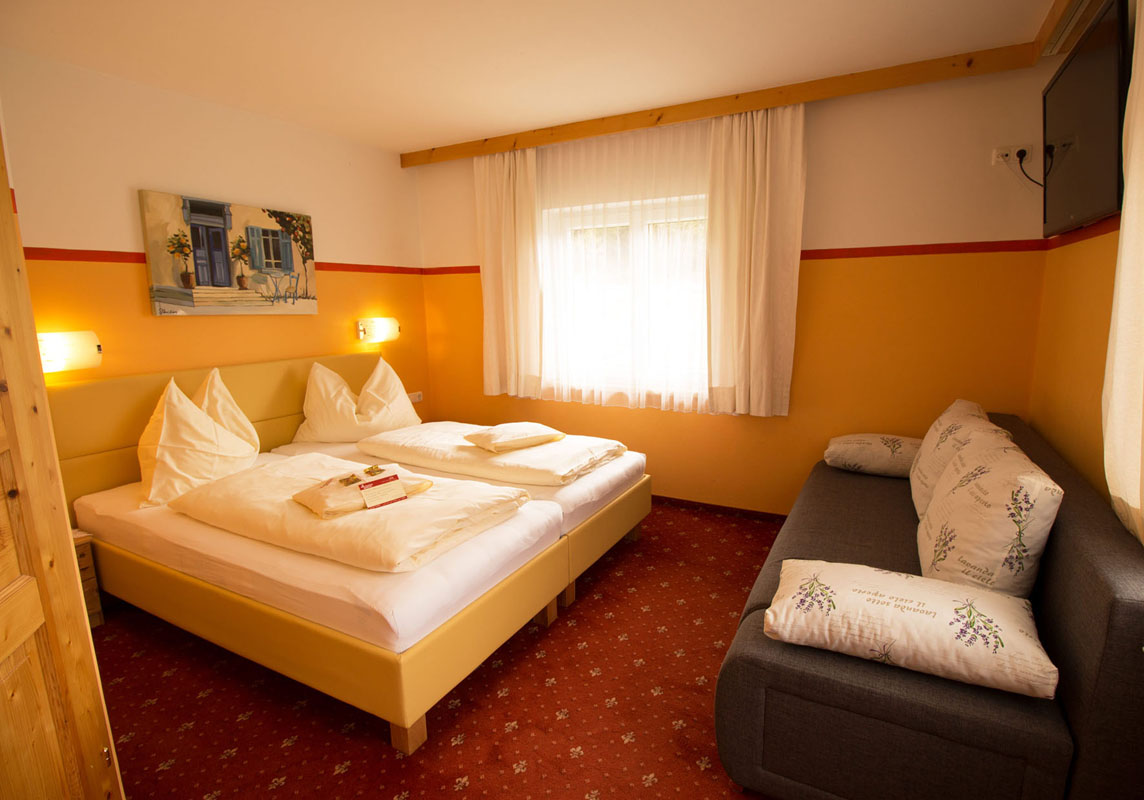 Family 2+2 - 22 až 26 m² - pokoj s manželskou postelí, možnost rozkládacího gauče až pro 2 děti do nedovršených 12 let, sociální zařízení se sprchou či vanou, zpravidla balkon
