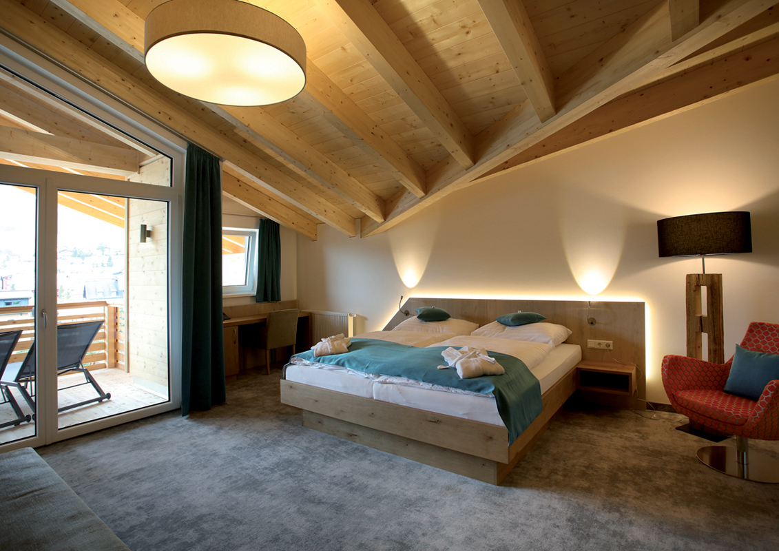 • prostorné a moderní pokoje od standardních typologií až po panorama suite dokonce i s vlastní saunou