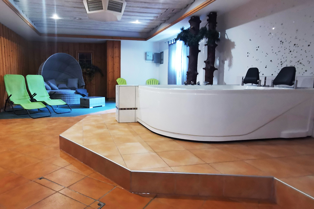 vířivka* pro 2 osoby, sauna*, relaxační koutek s lehátky