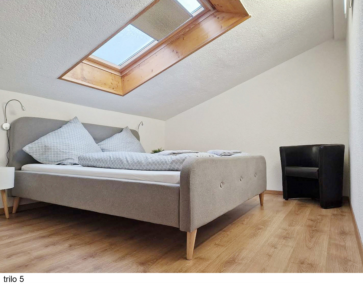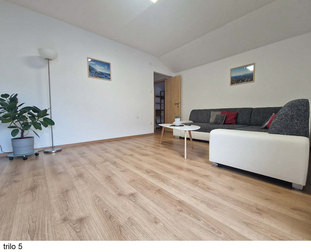 trilo 5 - 90 m² - ložnice s manželskou postelí, ložnice s manželskou postelí a rozkládacím gaučem pro 1 osobu, obývací pokoj s kuchyňským koutem, sociální zařízení, balkon