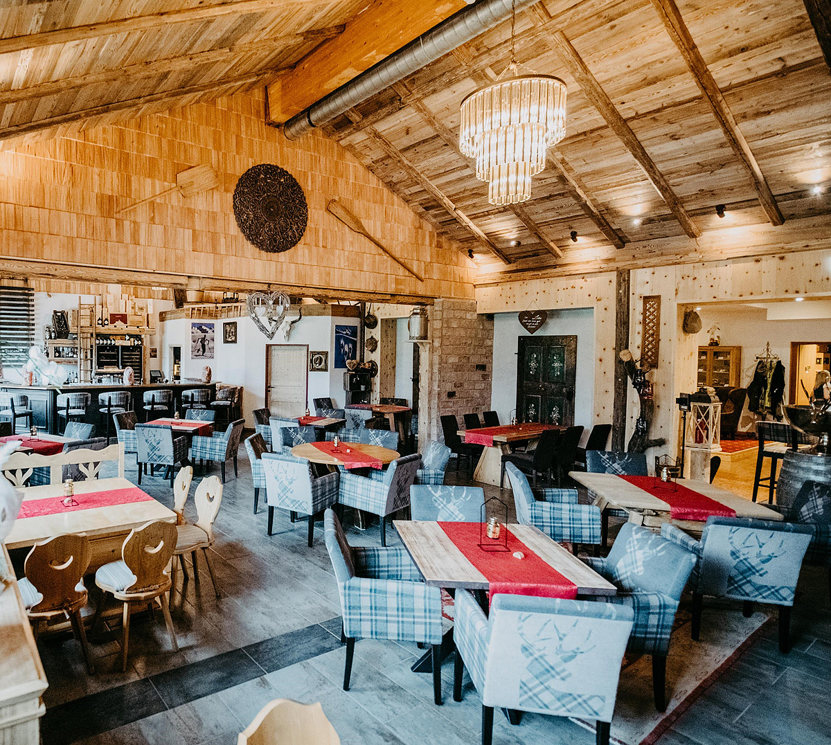 recepce / lobby, restaurace vyhrazená pro hotelové hosty, stylová restaurace "Zirbenstüberl", bar, vinný sklípek, seminární místnost až pro 250 osob, wi-fi připojení k internetu, uvítací přípitek, úschovna lyží a lyžařských bot, 2x výtah, vyhrazené parkoviště, nabíjecí stanice elektroaut*