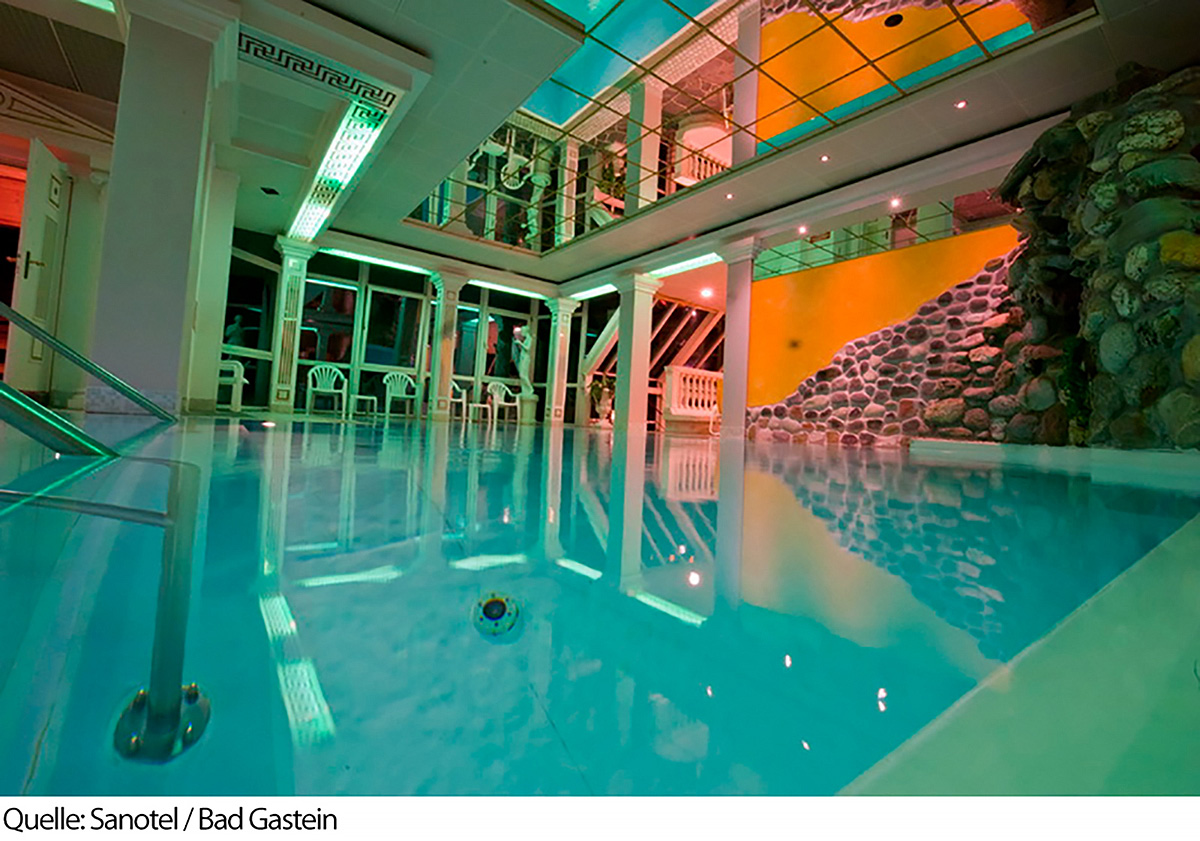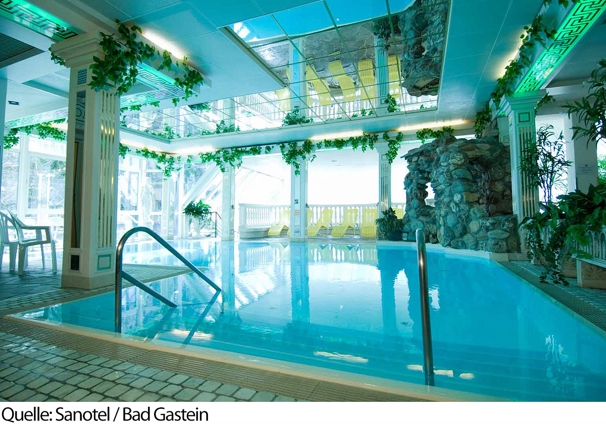 krásné wellness centrum včetně bazénu a relaxační místnosti s výhledem na vodopád