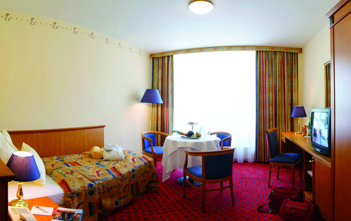 TV sat., telefon, fén, trezor, wi-fi připojení k internetu, minibar*, župany* a pantofle* do wellness