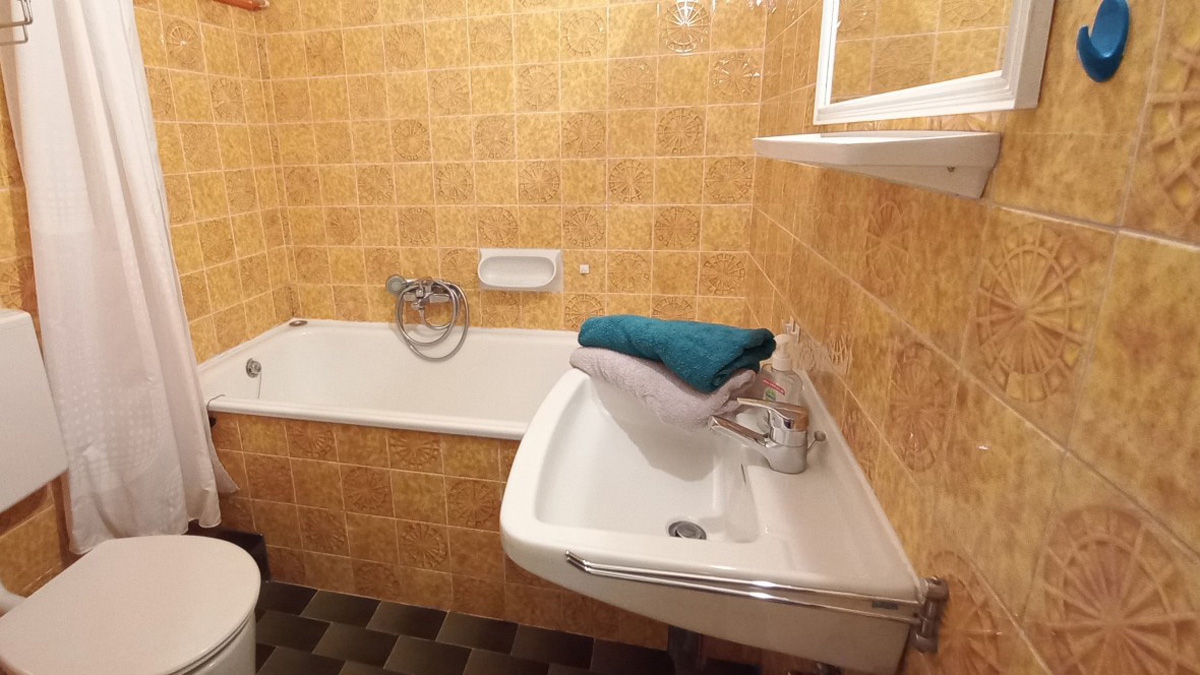 bilo 2+2 - 46 m² - ložnice s manželskou postelí (140 x 200 cm) či palandou či 2 samostatnými lůžky pro 2 děti do nedovršených 17 let, obývací pokoj s rozkládacím gaučem pro 2 osoby či opticky oddělenou manželskou postelí, kuchyňský kout zpravidla ve vstupní chodbě, sociální zařízení se sprchou či vanou, balkon