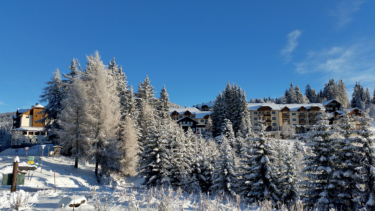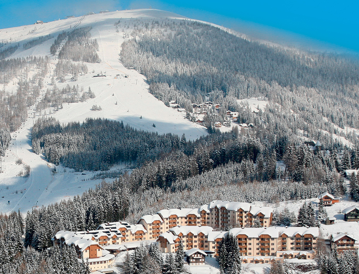 Treffen am Ossiacher See, centrum - 9,5 km, skiareál Gerlitzen - max. 300 m; za dobrých sněhových podmínek příjezd k některým budovám možný přímo na lyžích, ke vzdálenějším budovám, pak průchod přes komplex