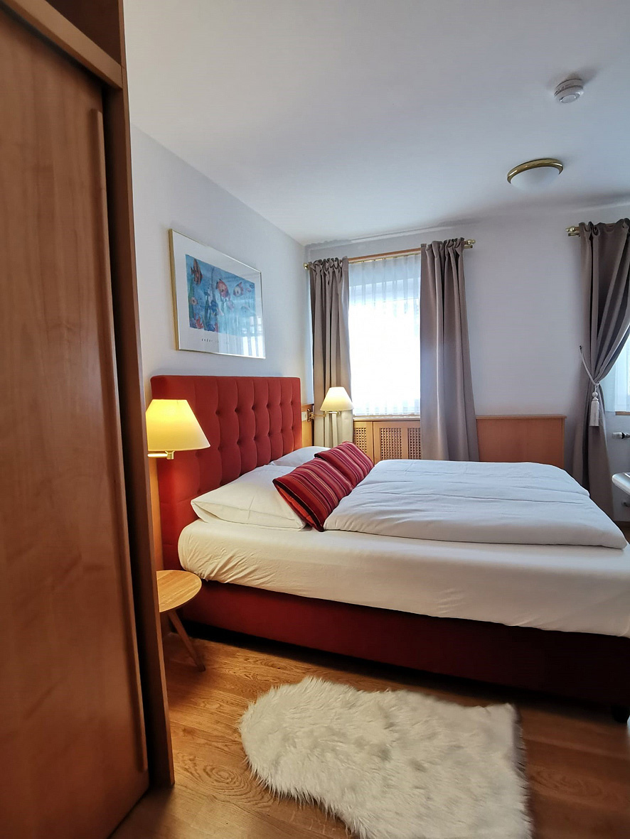 Family 4 - pokoj s manželskou postelí, menší pokoj s rozkládacím gaučem či palandou až pro 2 osoby či manželskou postelí oddělený posuvnými či propojovacími dveřmi (možná i varianta 2 pokojů naproti sobě bez propojení), sociální zařízení, balkon; pokoje jsou orientovány na jižní stranu s přímým či částečným výhledem na jezero a jsou v hlavní či vedlejší budově; minimální obsazenost 2 dospělí a 2 děti od 6 let