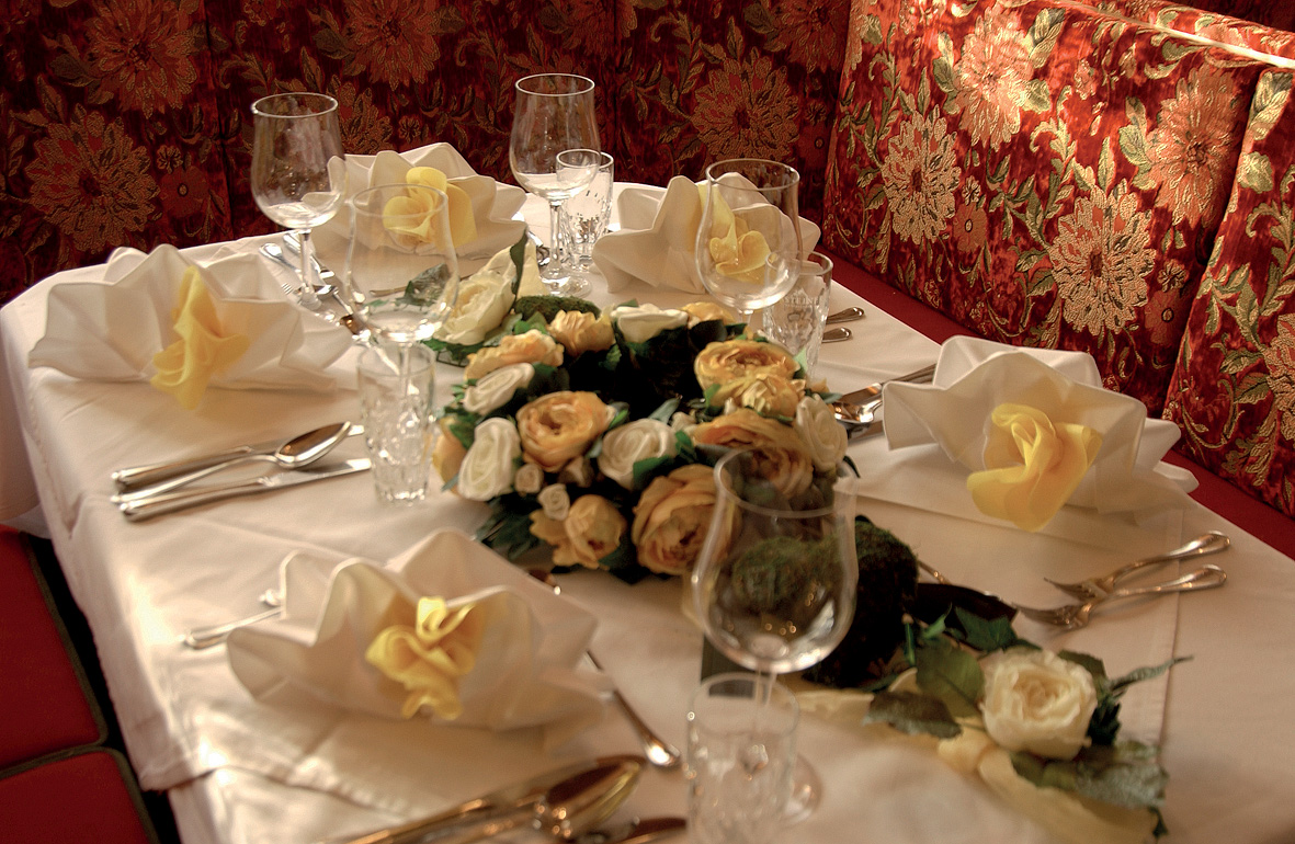 formou servírovaného 3chodového menu, od 10.00 do 22.00 hodin vybrané nealkoholické nápoje, od 17.00 do 22.00 hodin točené pivo, stolní víno, ostatní nápoje za poplatek