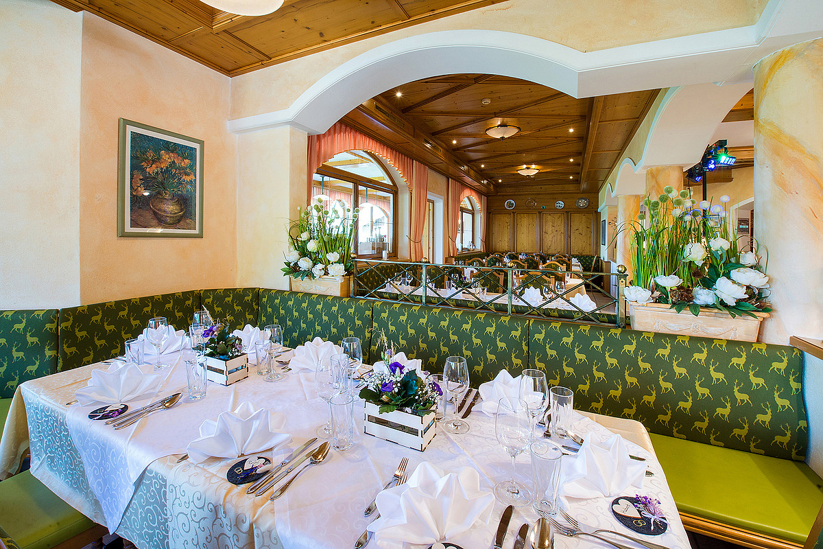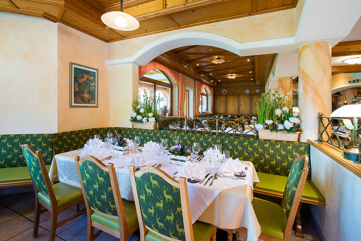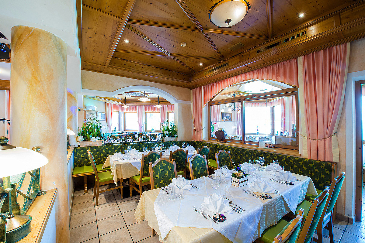 servírované 3chodové menu s výběrem hlavního jídla s přílohou, servírovaný předkrm či polévka, salátový bufet, servírovaný dezert, nápoje za poplatek; zpravidla 1x týdně speciální tirolský bufet