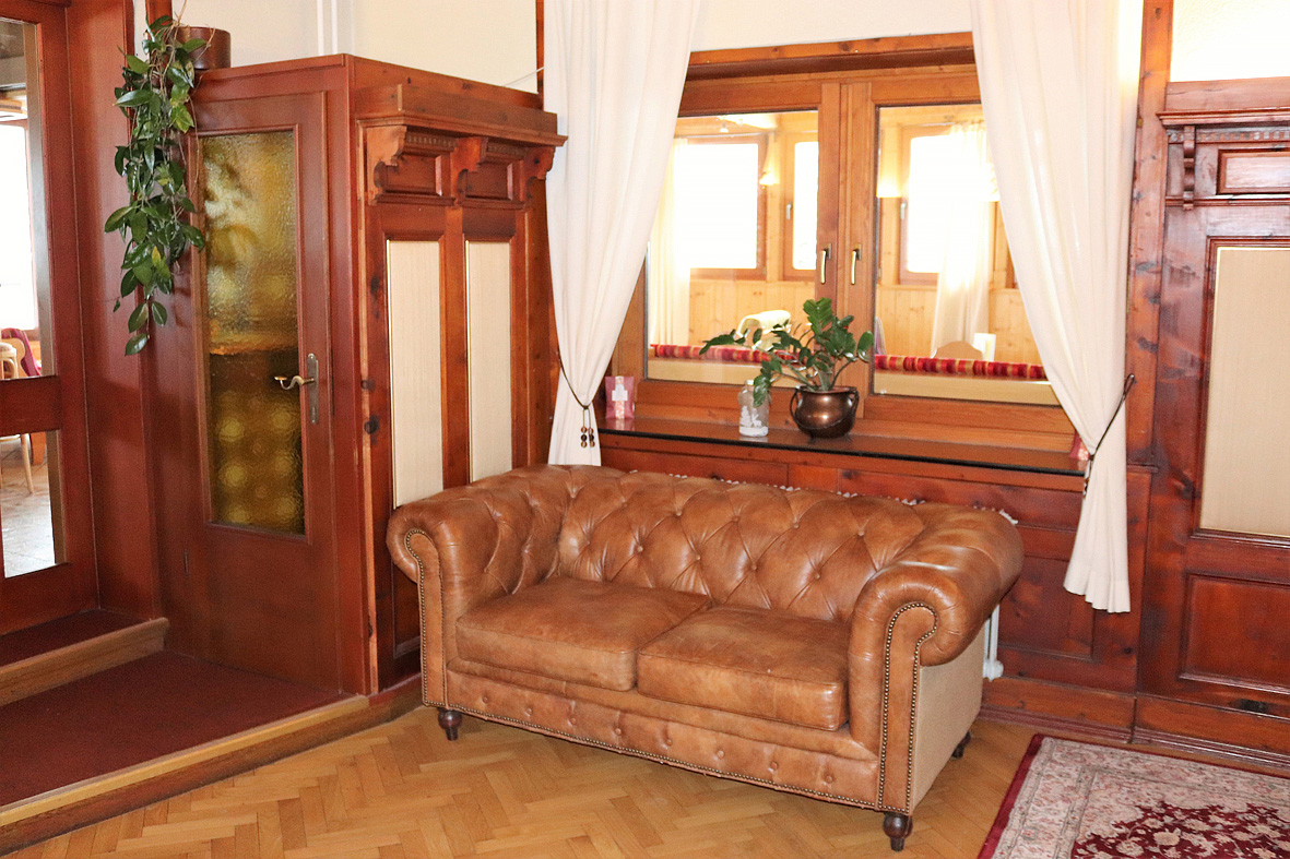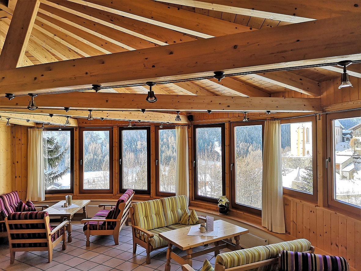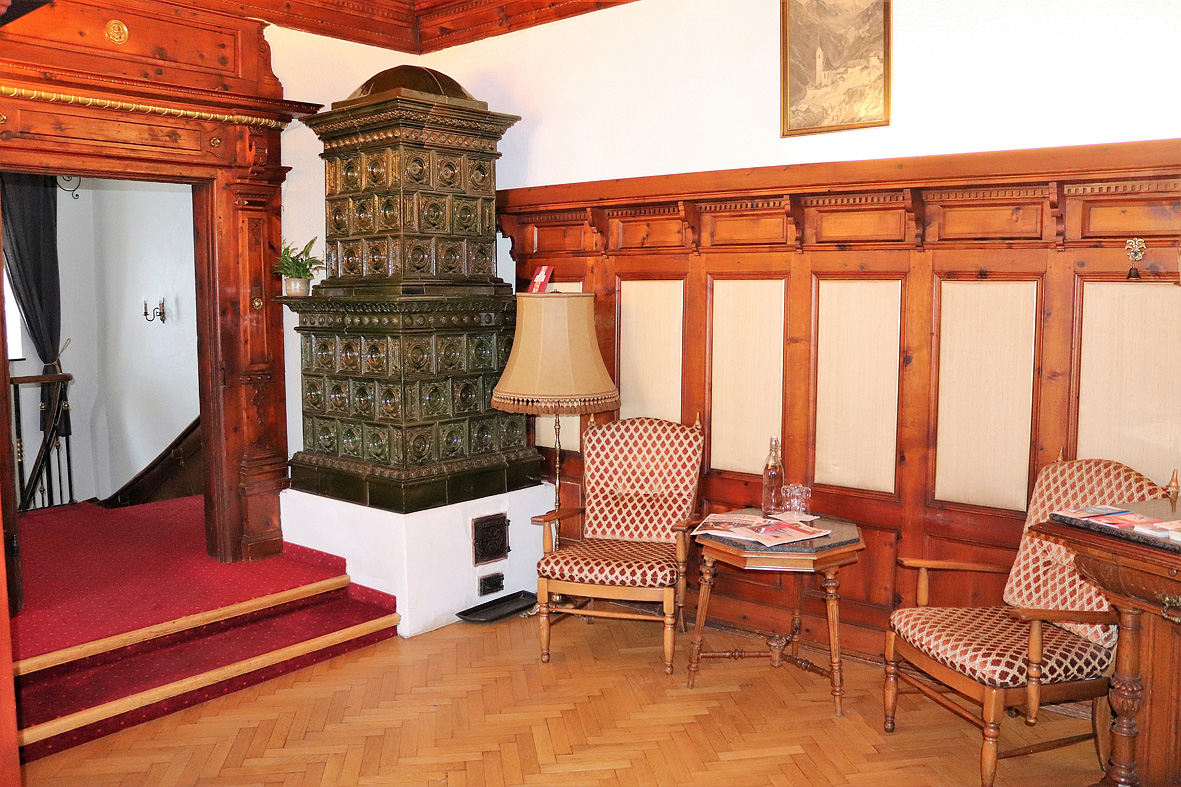 recepce / lobby s kachlovými kamny, restaurace vyhrazená pro hotelové hosty / bar, sluneční terasa s posezením, wi-fi připojení k internetu, úschovna lyží a lyžařských bot, výtah, vyhrazené parkoviště