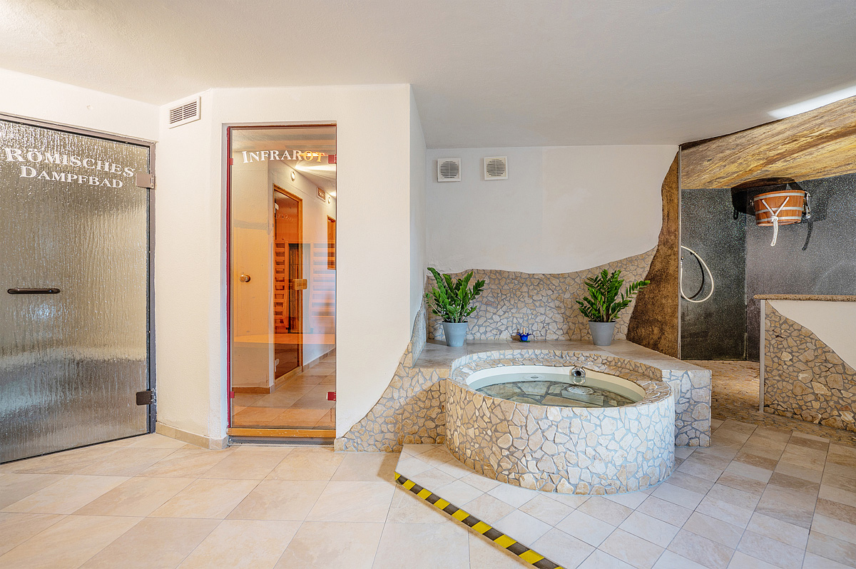 bazén 32 m², finská sauna, bylinná sauna, infrakabina, zážitková sprcha, Kneippův chodník, relaxační koutek s lehátky, masáže*, kosmetické služby*