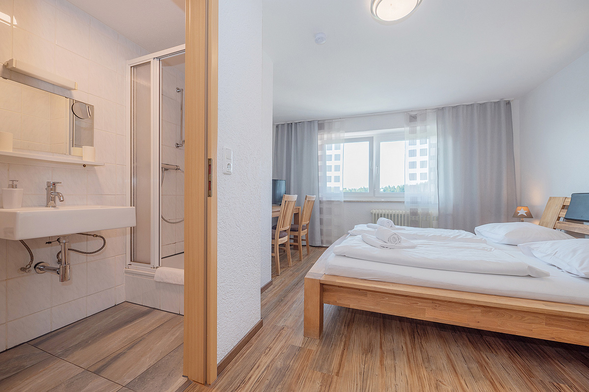28 m² - pokoj s manželskou postelí a rozkládacím gaučem pro 2 osoby, sociální zařízení, zpravidla balkon; nelze infant nad rámec maximální obsazenosti pokoje