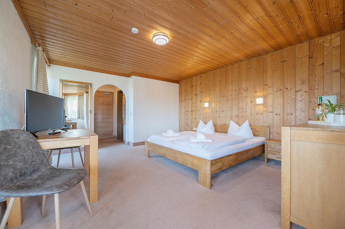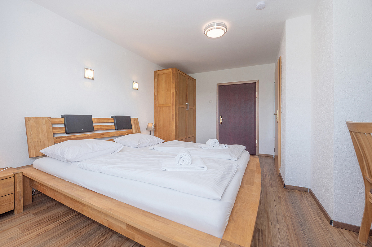 22 m² - pokoj s manželskou postelí a gauč pro 1 osobu, sociální zařízení, zpravidla balkon; nelze infant nad rámec maximální obsazenosti pokoje