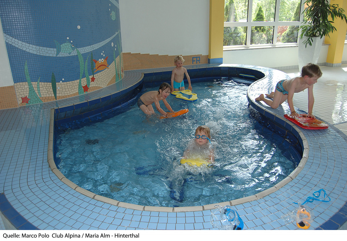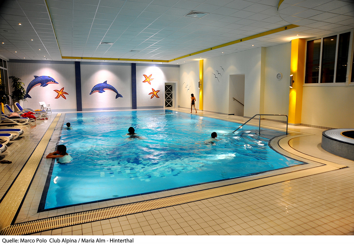 bazén 15 x 7 m, dětský bazének, finská sauna#, rodinná sauna, pára#, infrakabina#, horizontální solárium*#, relaxační koutek s lehátky#, masáže*, kosmetické služby*, posilovna, stolní tenis, biliár*; služby označené # jsou pro děti přístupné až od 16 let