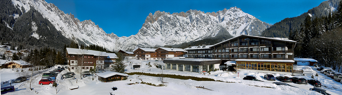 hotel sestává z hlavní budovy Alpina, v rámci které jsou i všechny níže uvedené služby a několika vzájemně propojených budov (Schöneck a Hochkönig); pokoje jsou nabízeny dle umístění v jednotlivých budovách (mono 2 Alpina a mono 3 Schöneck/Hochkönig) či bez rozlišení (bilo 4), tedy bez konkretizace budovy, ve které jsou umístěny