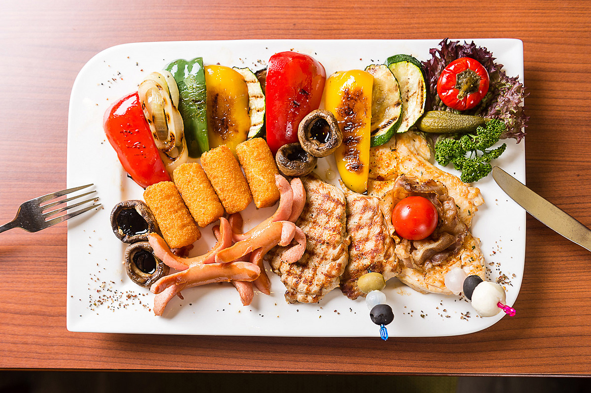 večeře - zpravidla formou bufetu s výběrem ze 2 hlavních jídel s přílohou (jedno jídlo vždy vegetariánské); polévka, saláty a dezert formou bufetu, nápoje za poplatek