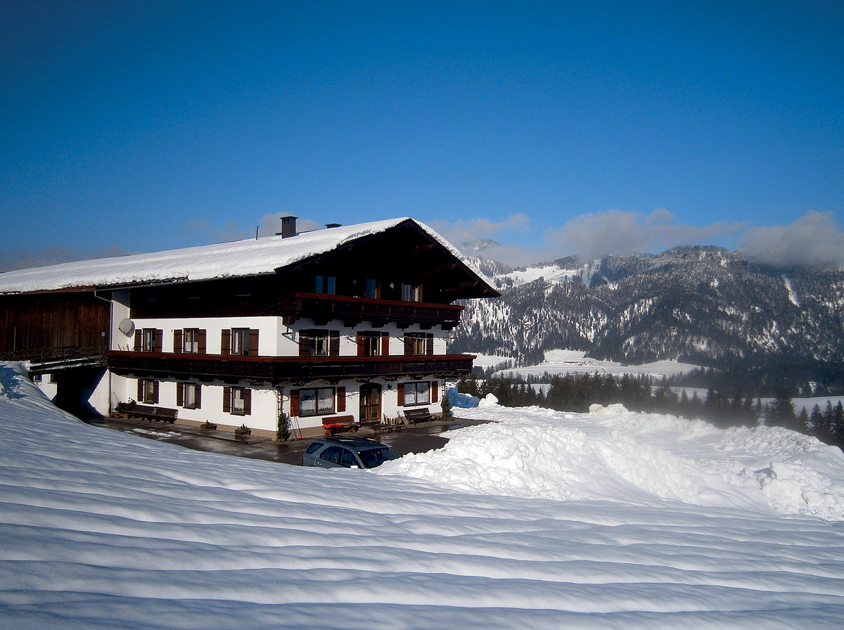 Kössen, centrum - 6 km, skiareál Hochkössen - 7 km, skiareál Zahmer Kaiser - Walchsee - 9 km, Schneewinkel (3 Länder Freizeit-Arena) / Winkelmoosalm (Německo) - 18,3 km, skiareál SkiWelt Wilder Kaiser - Brixental - 26,8 km; Kitzbühel - 29 km; příjezdová cesta k ubytování je v zimě hůře udržovaná, nutné sněhové řetězy