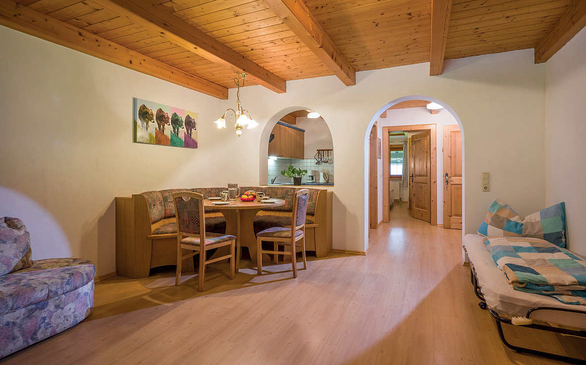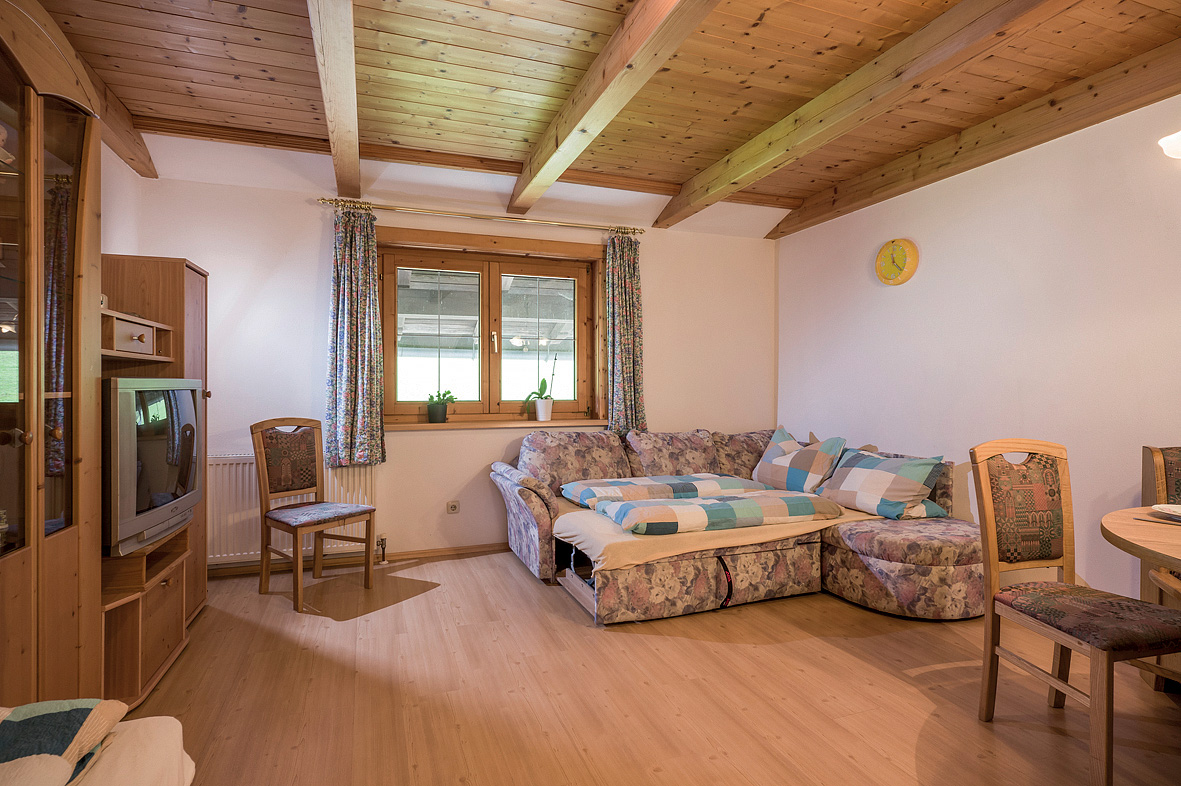 45 m² - ložnice s manželskou postelí a dalším samostatným lůžkem, obývací pokoj s kuchyňským koutem a rozkládacím gaučem pro 2 osoby, sociální zařízení
