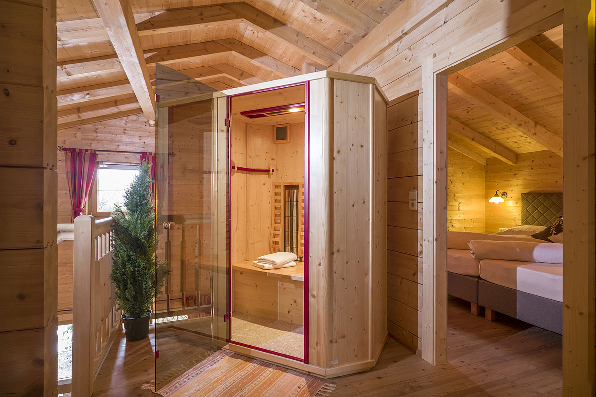 120 m² - 1. podlaží chaletu: malá ložnice s 1 samostatným lůžkem, obývací pokoj s kuchyňským koutem, gaučem a krbem, oddělené WC, terasa; 2. podlaží chaletu: 3 ložnice s manželskou postelí, 1 ložnice se 3 samostatnými lůžky, 2x sociání zařízení, 1x privátní infrakabina zpravidla balkon