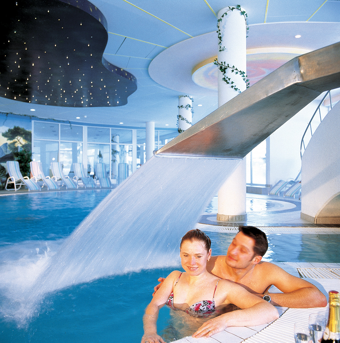 bazén 15 x 6 m, venkovní vyhřívaný bazén 25 m², finská sauna, bio sauna, pára, horizontální solárium*, relaxační koutek s lehátky, stolní tenis, stolní fotbal*; vstup do wellness je dětem povolen pouze v doprovodu dospělé osoby