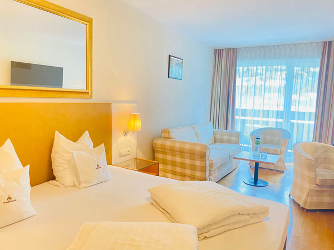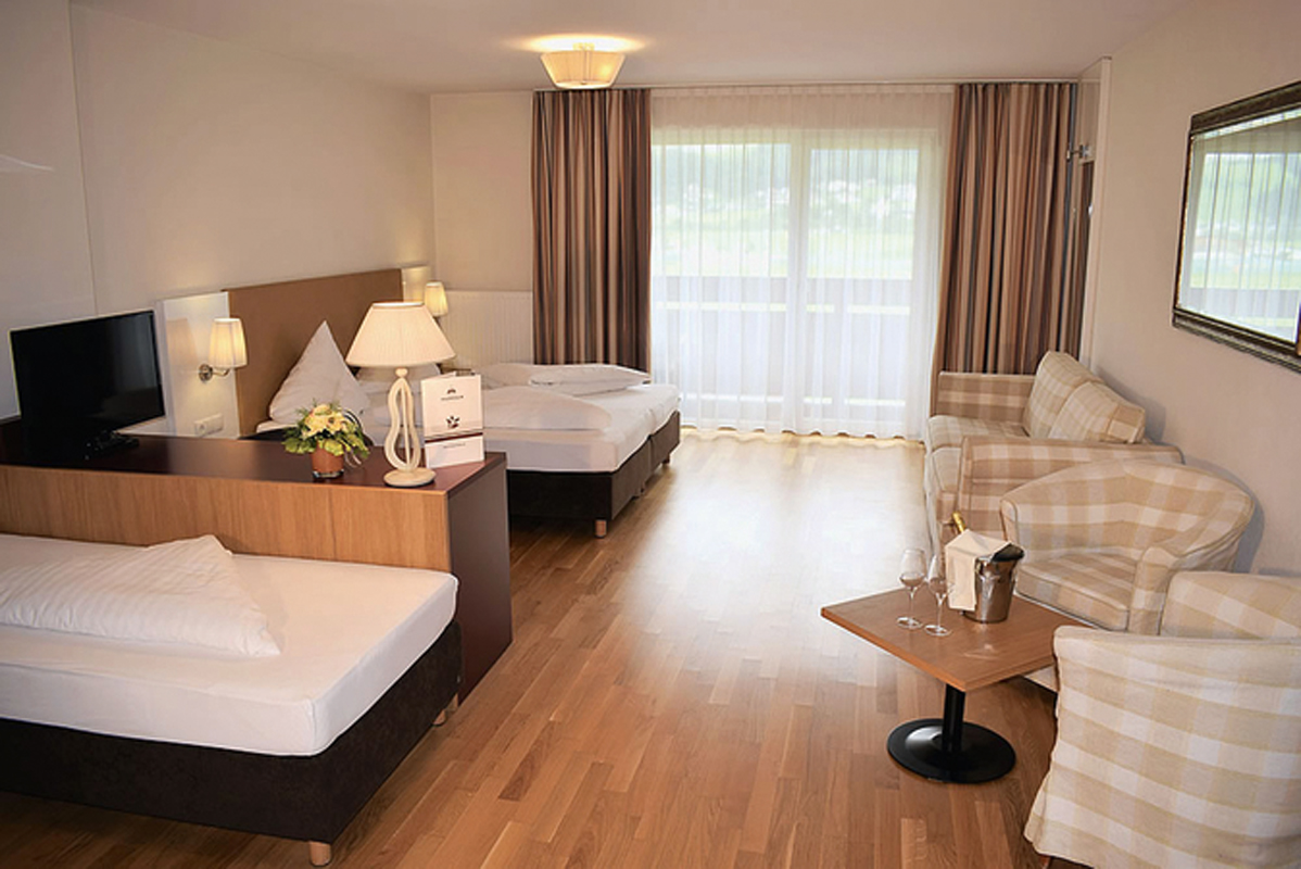 Suite Spieljoch 4 - 30 až 32 m² - pokoj s manžlesku postelí a rozkládacím gaučem až pro 2 osoby, sociální zařízení se sprchou či vanou, balkon