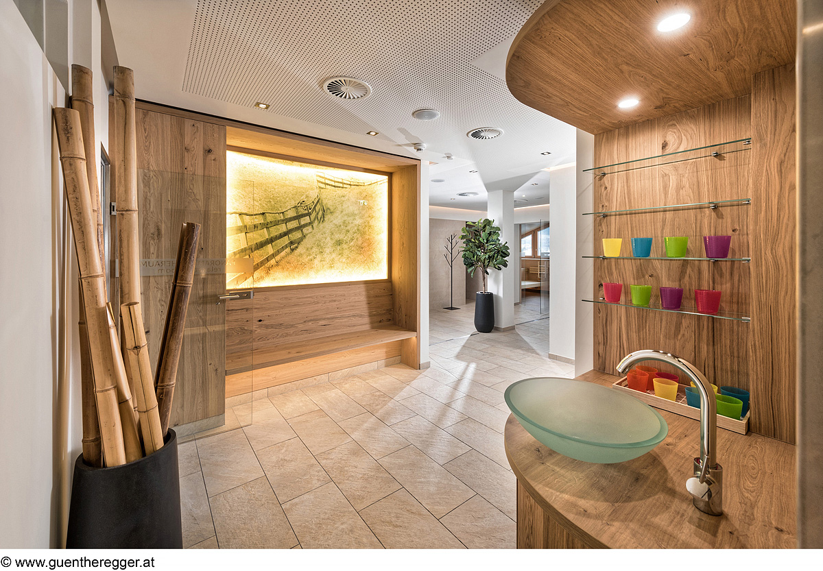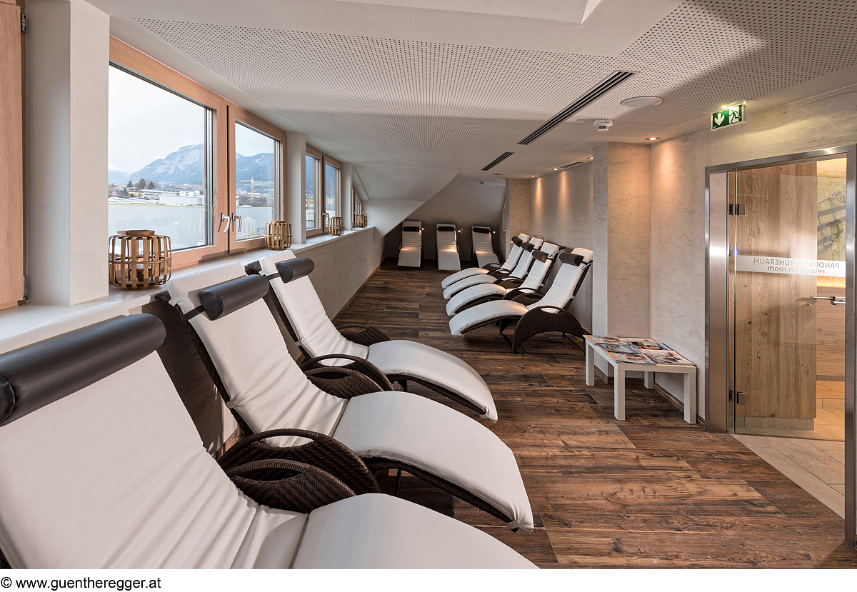 panoramatická finská sauna, bio sauna, aromatická pára, ledová sprcha, relaxační koutek s lehátky a vodními lůžky