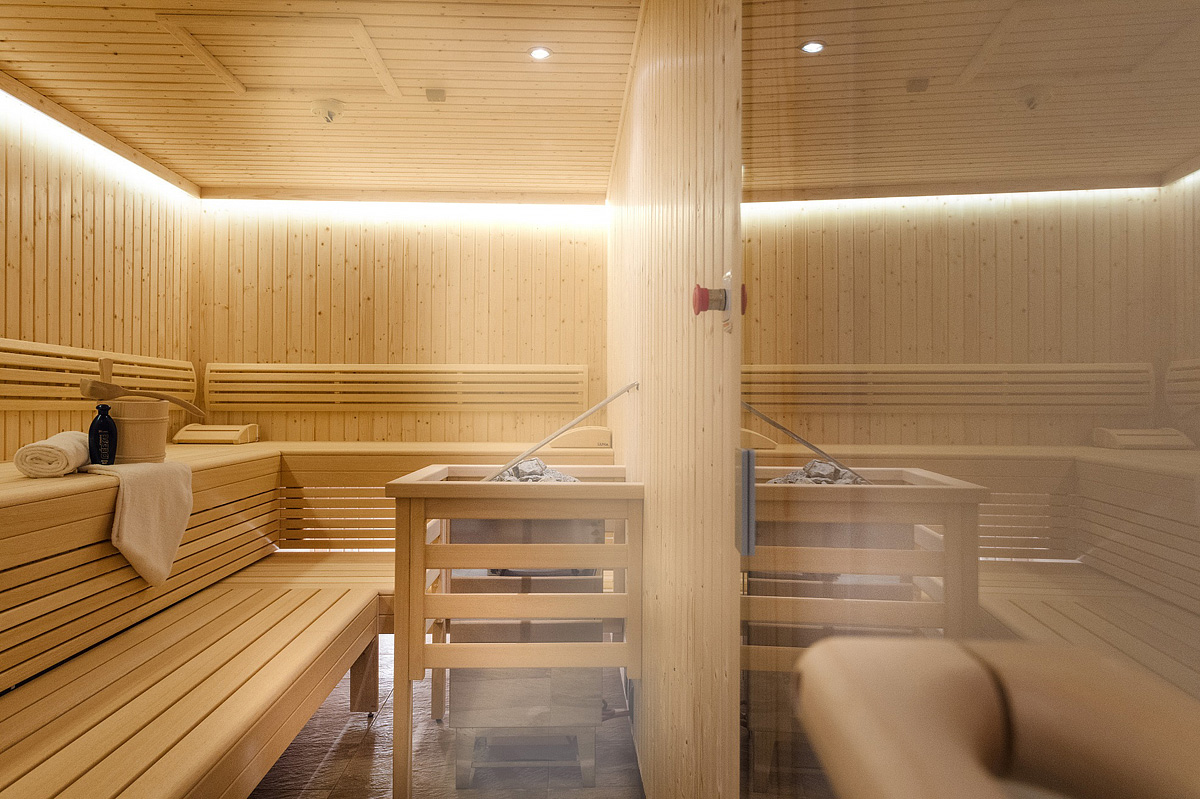 finská sauna, bylinná sauna, relaxační koutek s lehátky