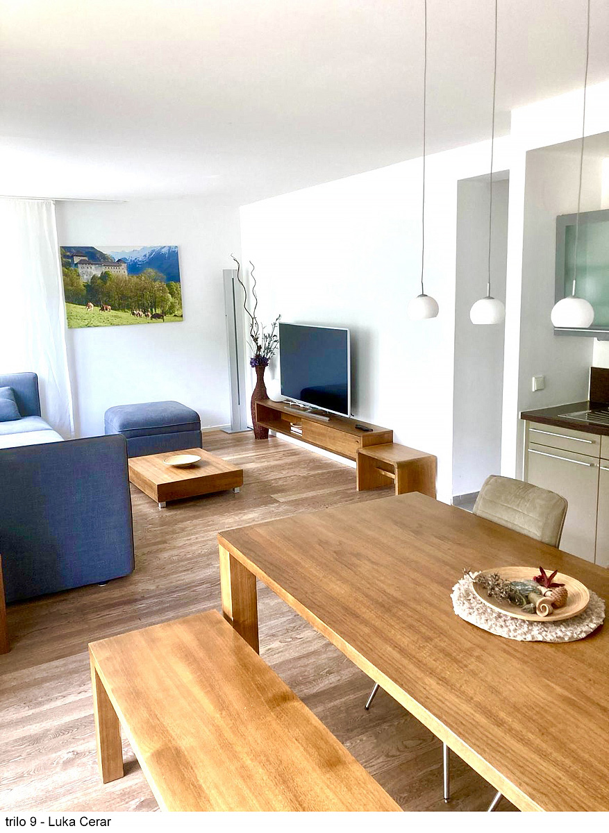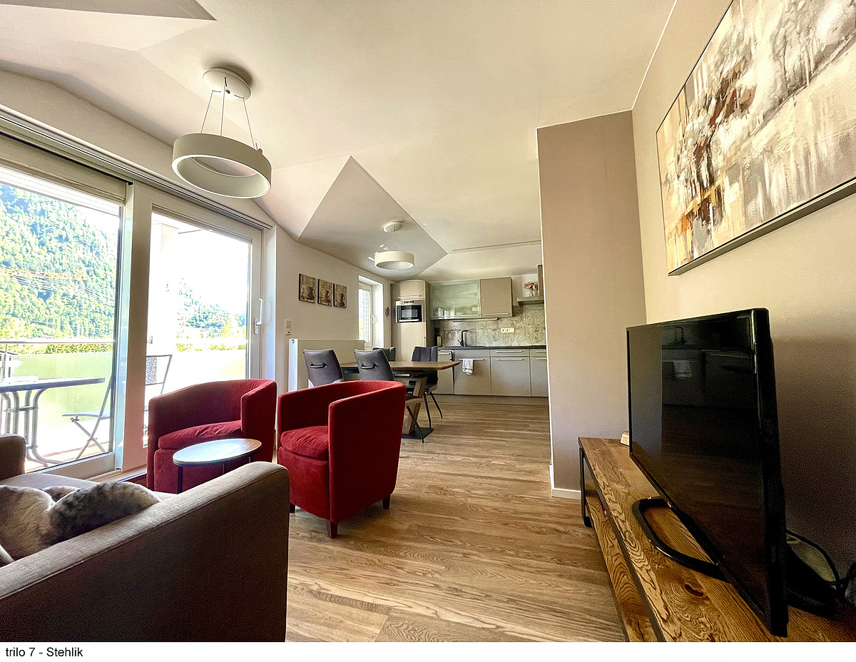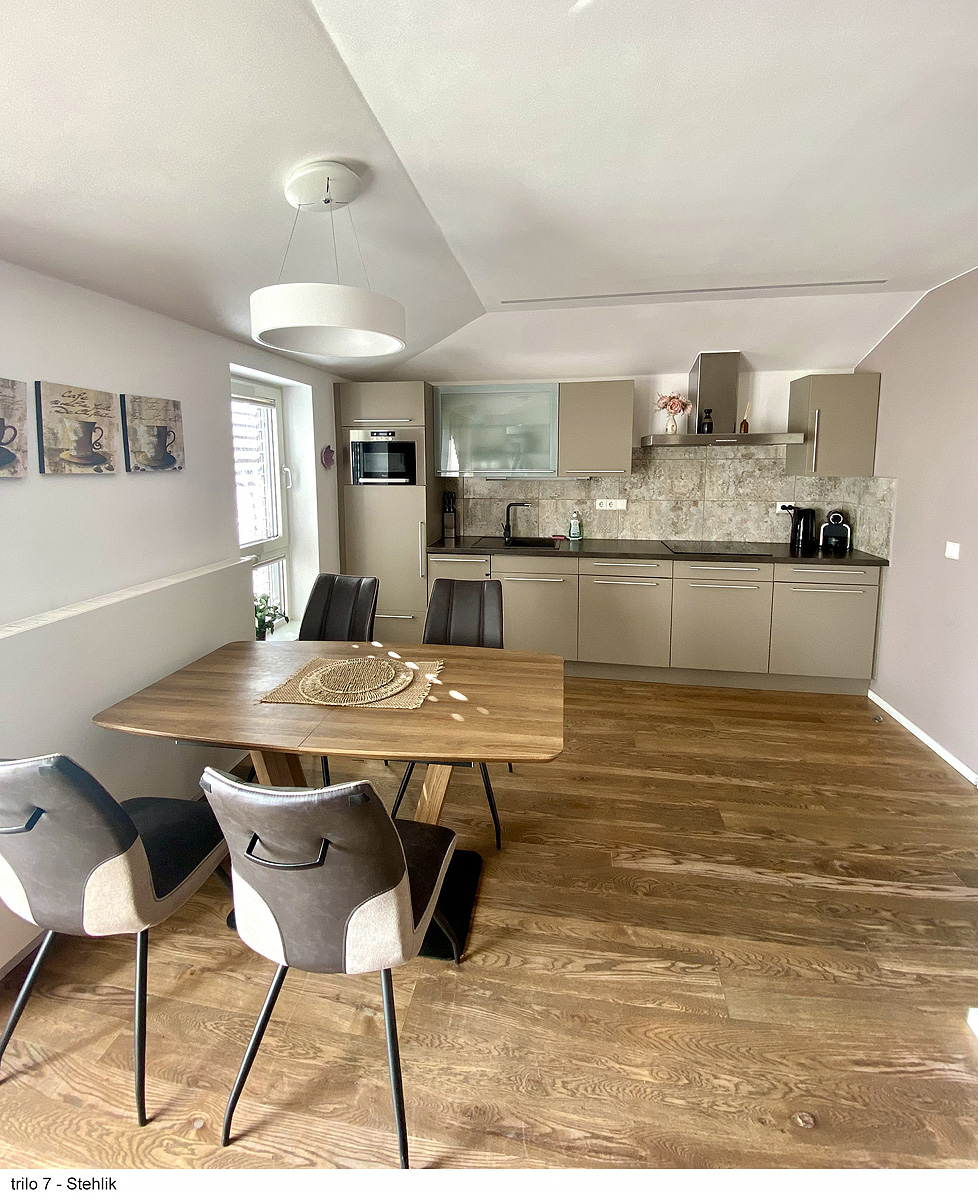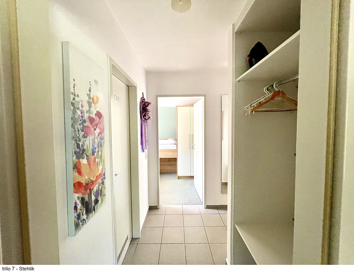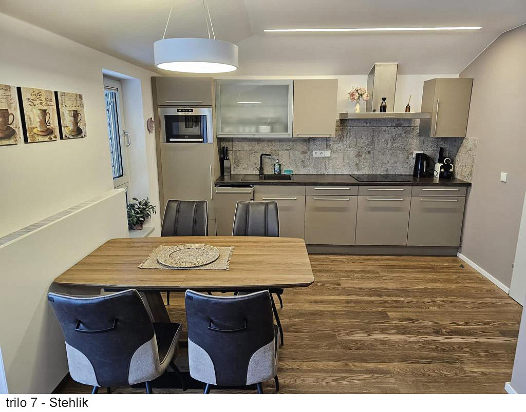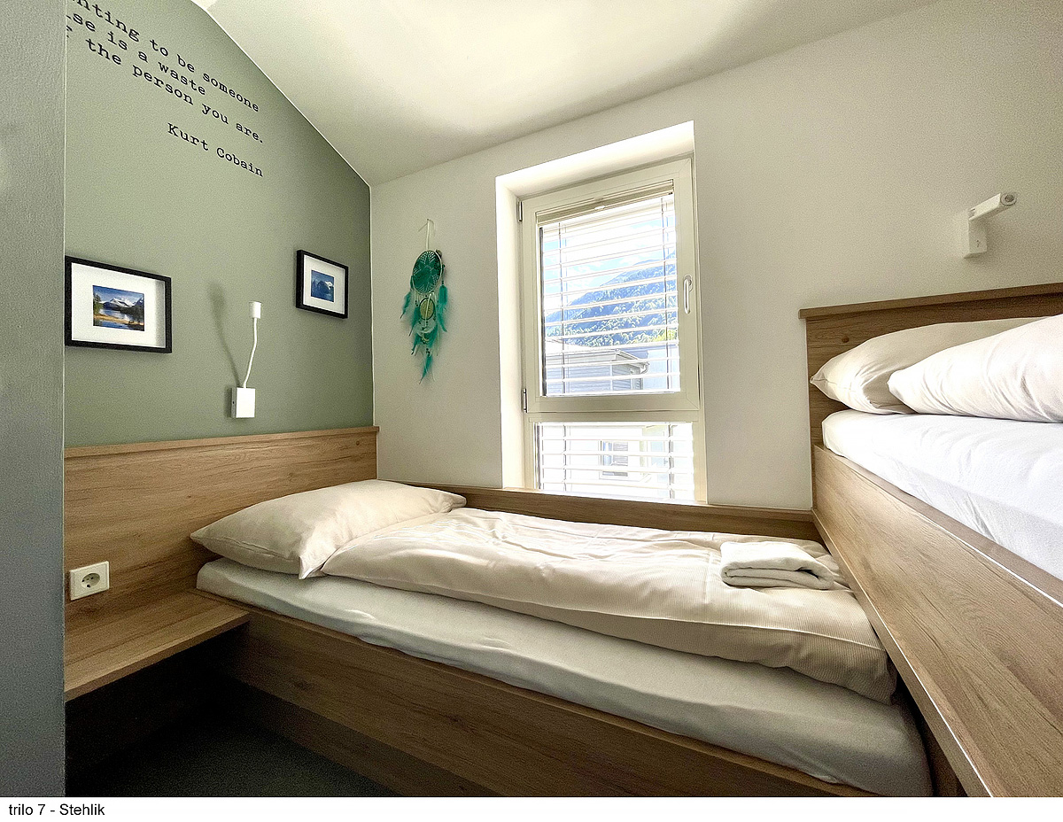 trilo 7 - 1 ložnice s manželskou postelí, 1 ložnice s atypickou palandou pro 2 osoby a možností přistýlky pro 1 osobu, obývací pokoj s kuchyňským koutem a rozkládacím gaučem pro 2 osoby, 2x sociální zařízení, balkon