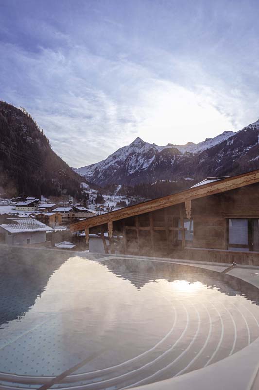 bazén na střeše hotelu "Infinity pool"#, finská sauna#, bio sauna#, infrakabina#, 2x relaxační koutek#, terasa s výhledem na Kitzsteinhorn#, posilovna#; služby označené # mohou využívat i klienti ubytovaní v apartmánech; vstup je povolen až od 18 let