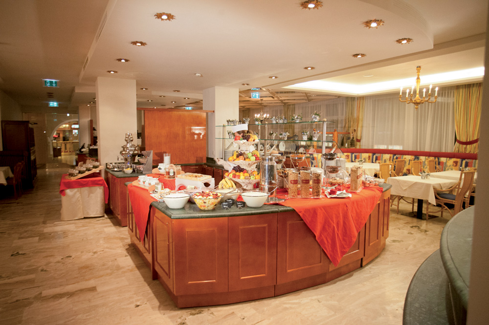 servírované 4 až 5chodové menu s výběrem hlavních jídel s přílohou, předkrmů, polévek, desertů a salátů či formou bufetu; nápoje za poplatek