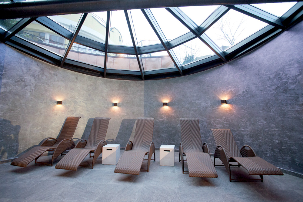 bazén 12 x 6 m, finská sauna#, bio sauna#, pára#, infrakabina#, zážitkové sprchy#, relaxační koutek s lehátky#, posilovna#, masáže*, kosmetické služby*; služby označené # jsou pro děti přístupné až od 12 let a pouze v doprovodu dospělé osoby