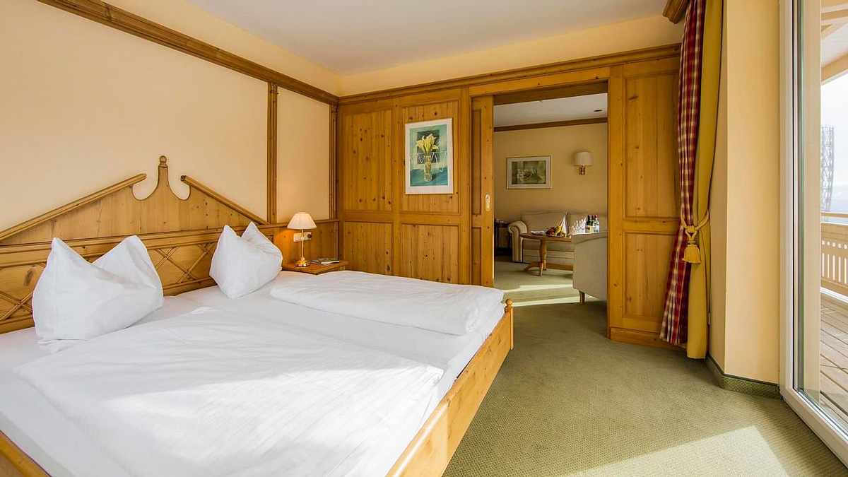 Junior Suite Comfort 2+2 - 30 m² - ložnice s manželskou postelí, menší ložnice s palandou či rozkládacím gaučem až pro 2 děti do nedovršených 15 let, sociální zařízení se sprchou či vanou, balkon; minimální obsazenost 2 dospělé osoby a 1 dítě; nelze infant nad maximální obsazenost pokoje