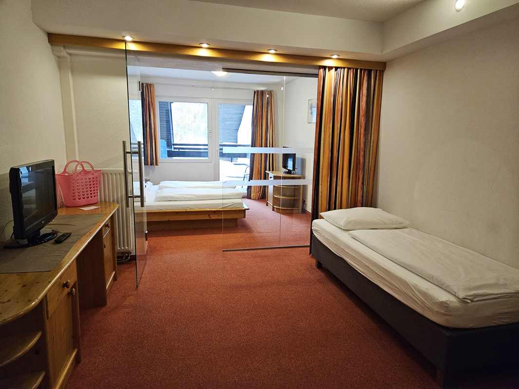 52 m² - ložnice s manželskou postelí, ložnice se 2 samostatnými lůžky, sociální zařízení se sprchou či vanou, balkon; minimální obsazenost 2 dospělé osoby a 2 děti