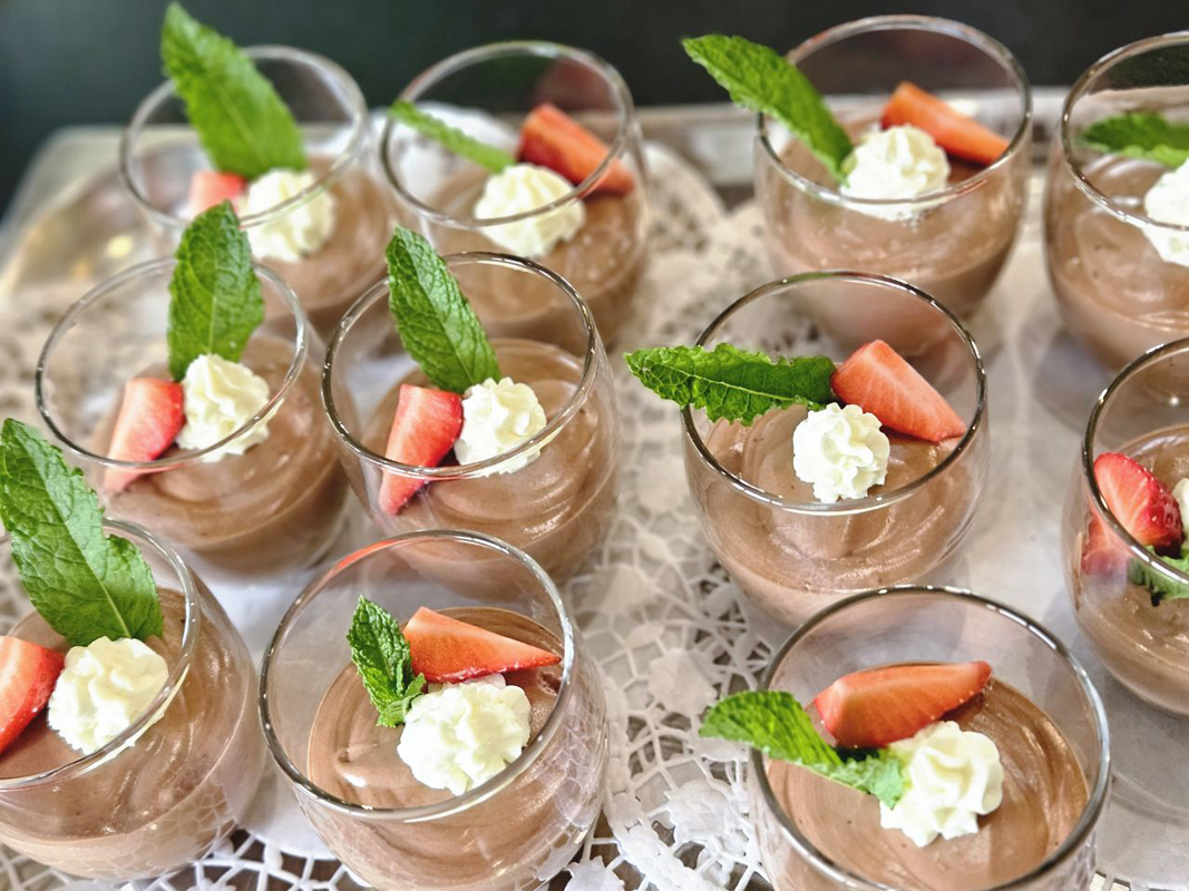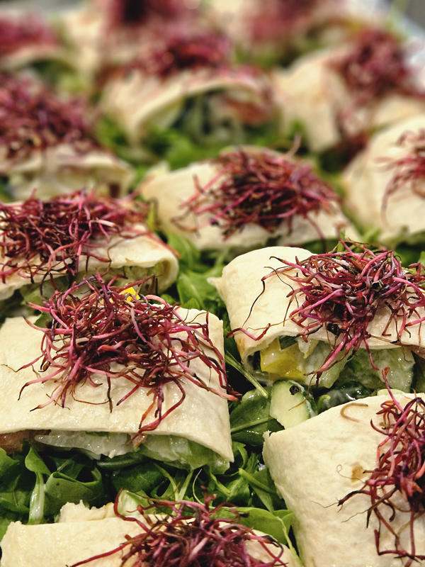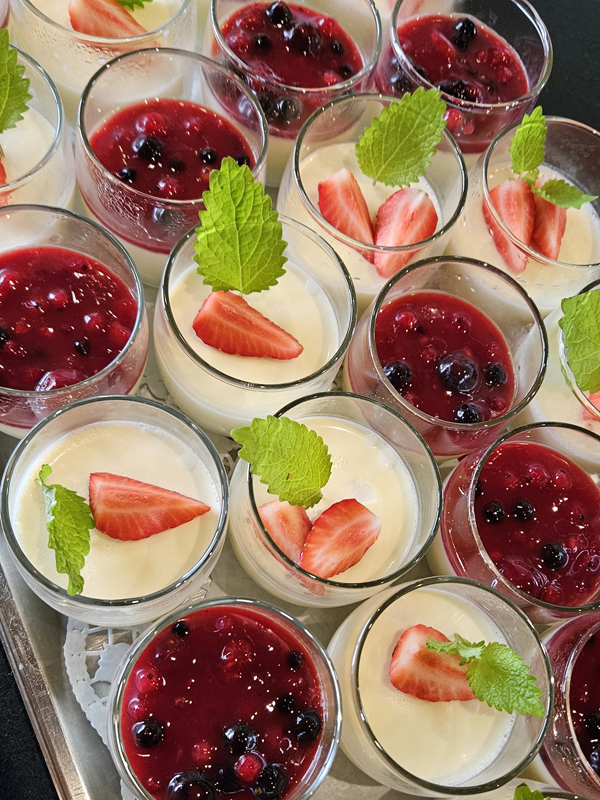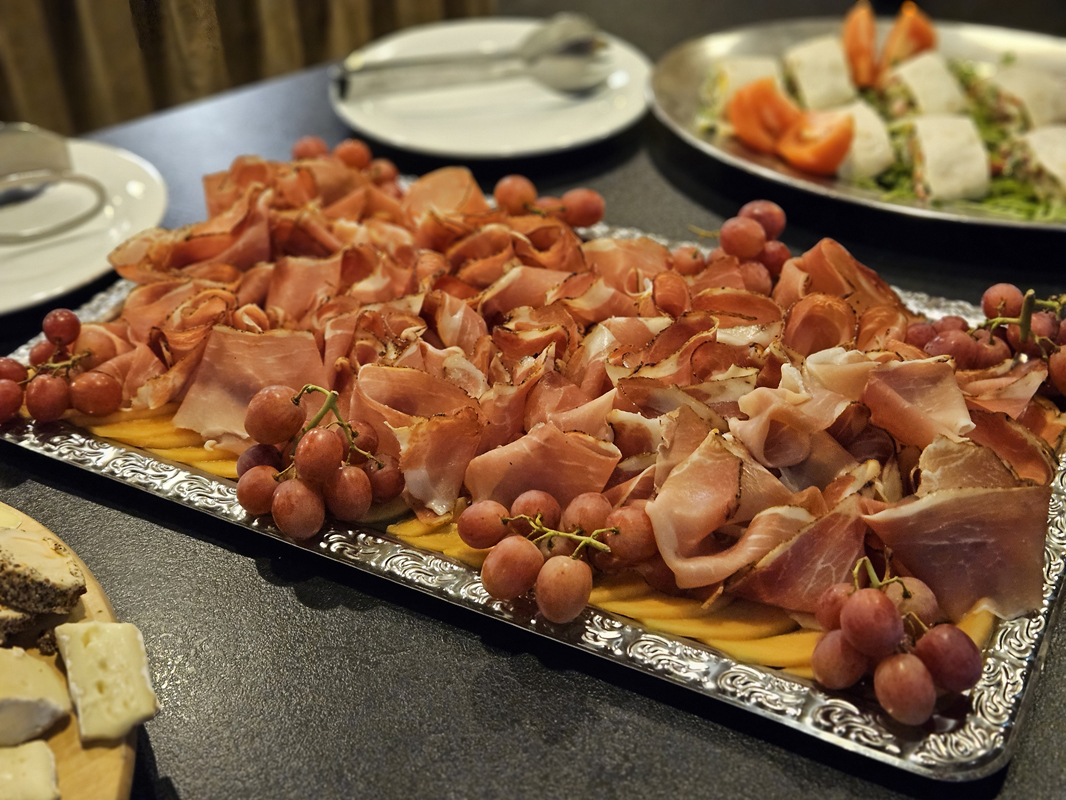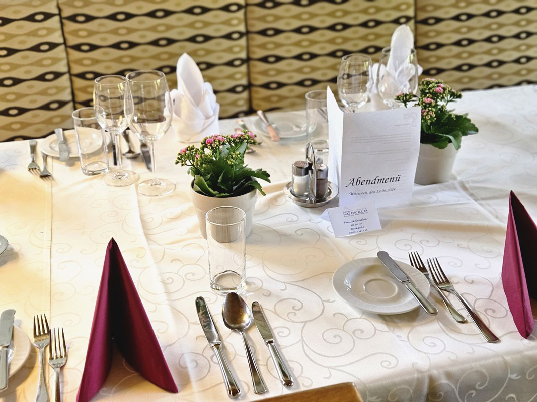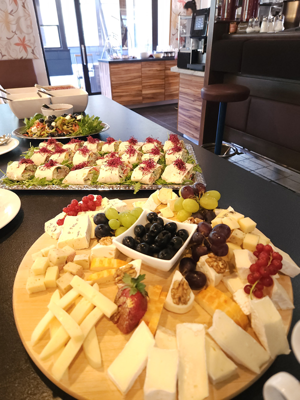 formou servírovaného 4chodového menu či formou bufetu s výběrem z hlavních jídel s přílohou, salátový bufet, nápoje za poplatek