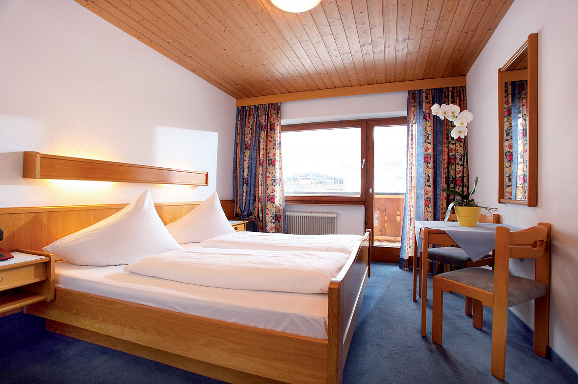 moderně zařízené a vybavené pokoje s krásným výhledem na Kitzbühelské Alpy