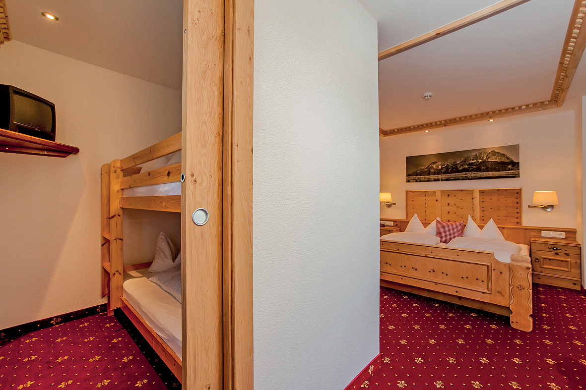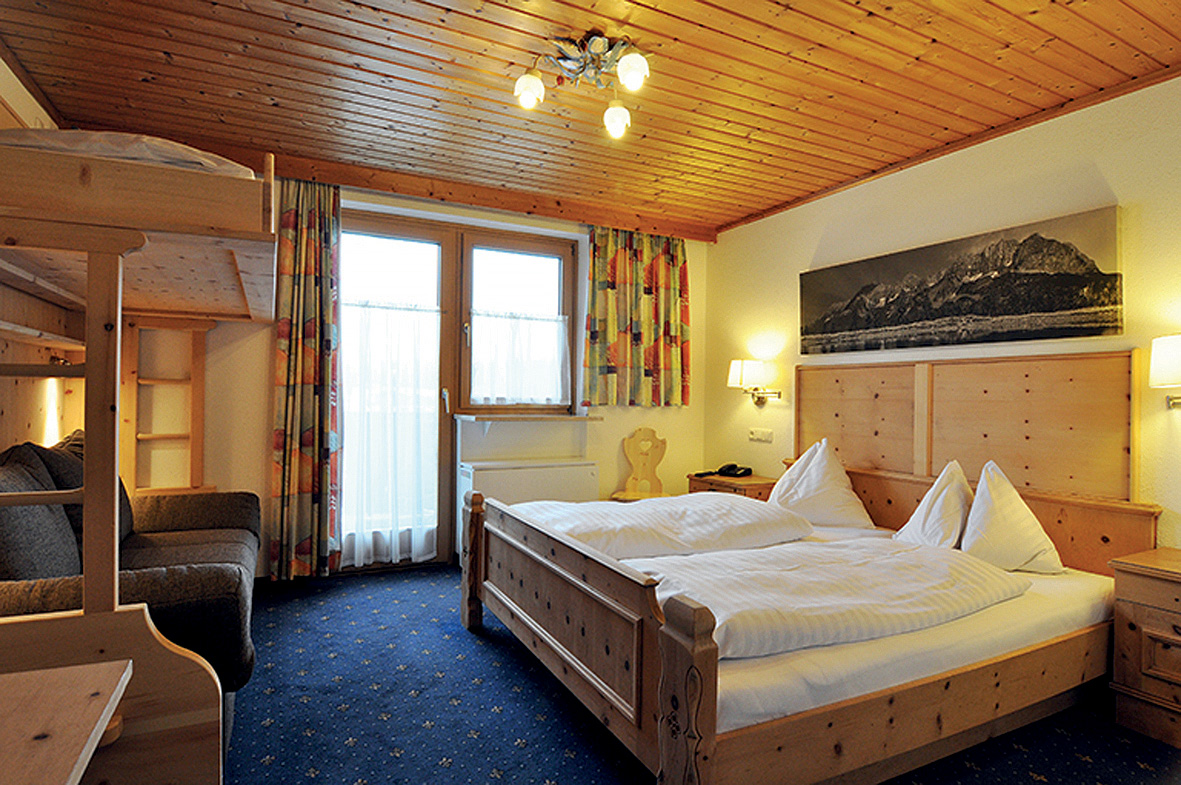 pokoj s manželskou postelí a přistýlkou či palandou až pro 1 dospělou osobu a 1 dítě do nedovršených 12 let či 2 děti do nedovršených 12 let, sociální zařízení s vanou, oddělené WC, balkon