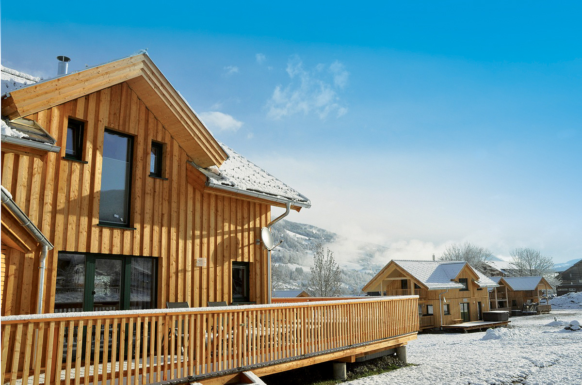 110 až 125 m² - chalet o 2 podlažích; obývací pokoj s kuchyňským koutem, 3 ložnice s manželskou postelí, ložnice s manželskou postelí a palandou pro 2 osoby či 2x palanda pro 4 osoby, 2 až 3x sociální zařízení, finská či infra sauna, venkovní vířivka, terasa