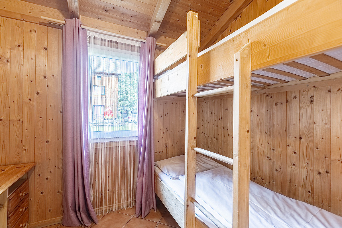 70 m² - samostatně stojící chata pro 6 až 8 osob; 1. podlaží apartmánu: obývací pokoj s kuchyňským koutem a rozkládacím gaučem pro 2 osoby, sociální zařízení, terasa; 2. podlaží apartmánu: 1 ložnice s manželskou postelí, 1 ložnice se 2 samostatnými lůžky a palandou pro 2 osoby, sociální zařízení, oddělené WC